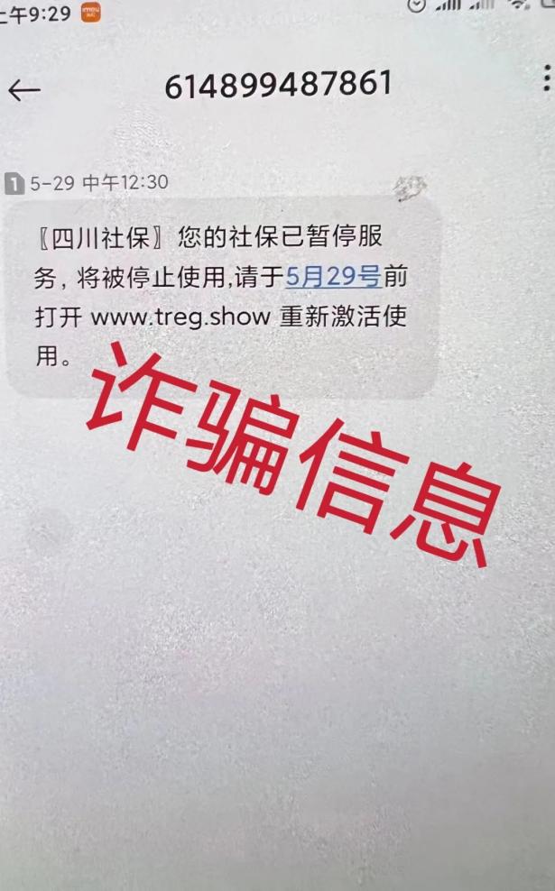 內容為“您的社保已暫停服務,將被停止使用……”等