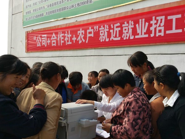 云山油茶基地油茶籽采摘在即,公司在基地適時(shí)舉辦了“公司+合作社+農(nóng)戶就近就業(yè)招工現(xiàn)場(chǎng)會(huì)",當(dāng)?shù)剞r(nóng)民報(bào)名登記十分踴躍,并爭(zhēng)相與公司、合作社簽訂季節(jié)性用工協(xié)議和合作協(xié)議。