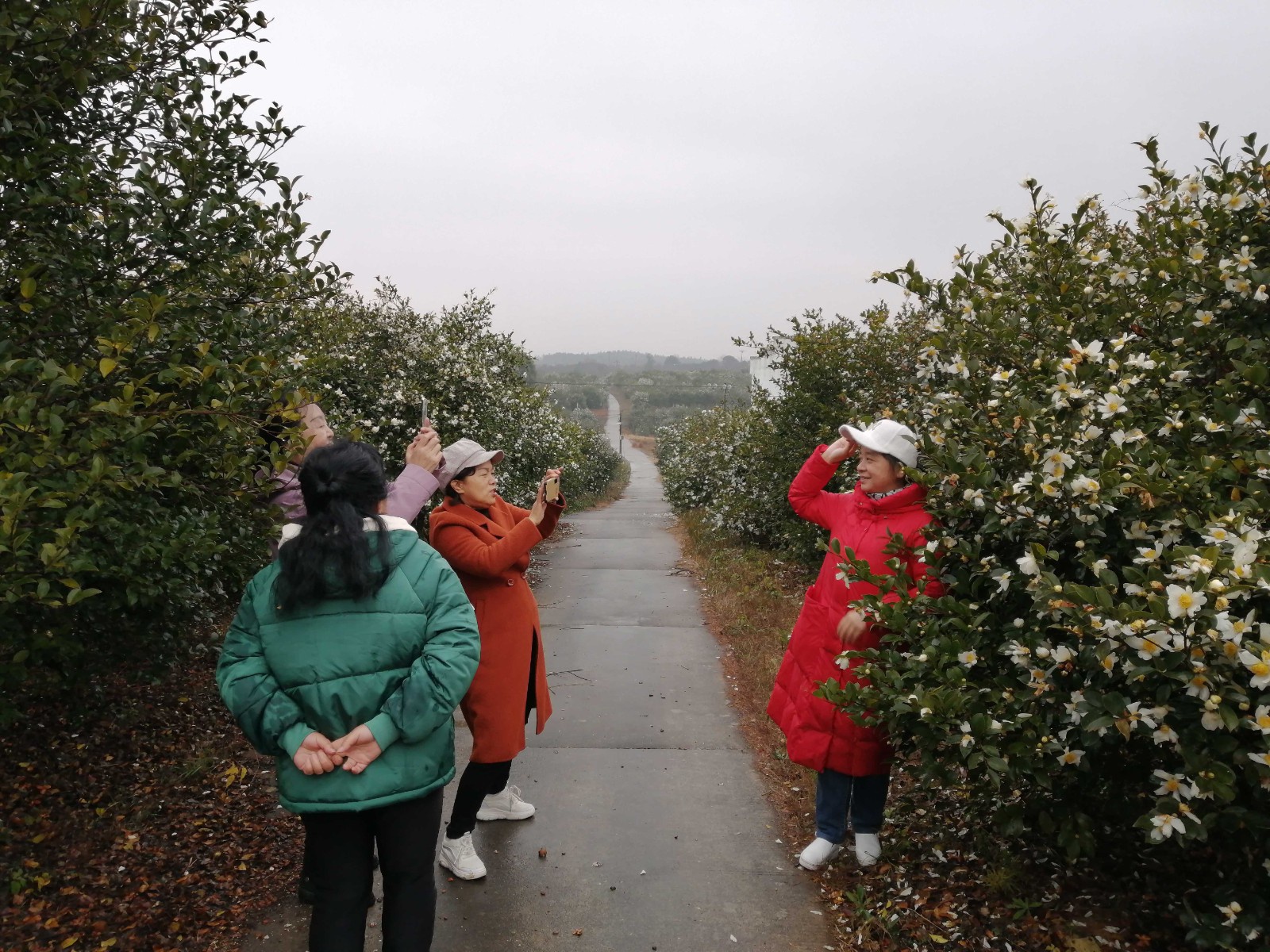今日云山油茶基地又迎來一批退休群樂者。她們用快樂的心態享受健康的生活。