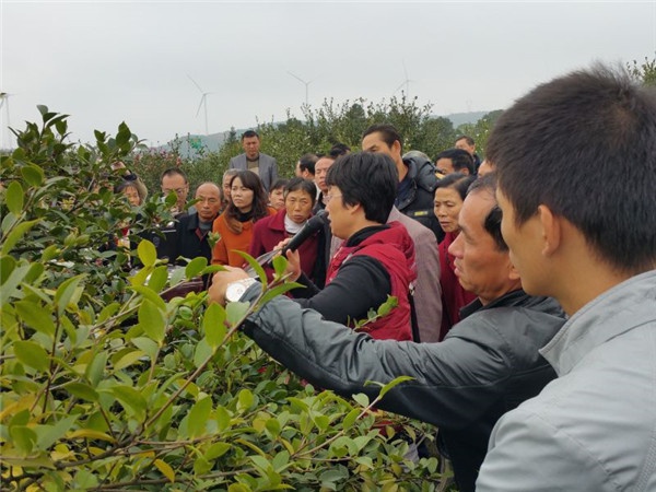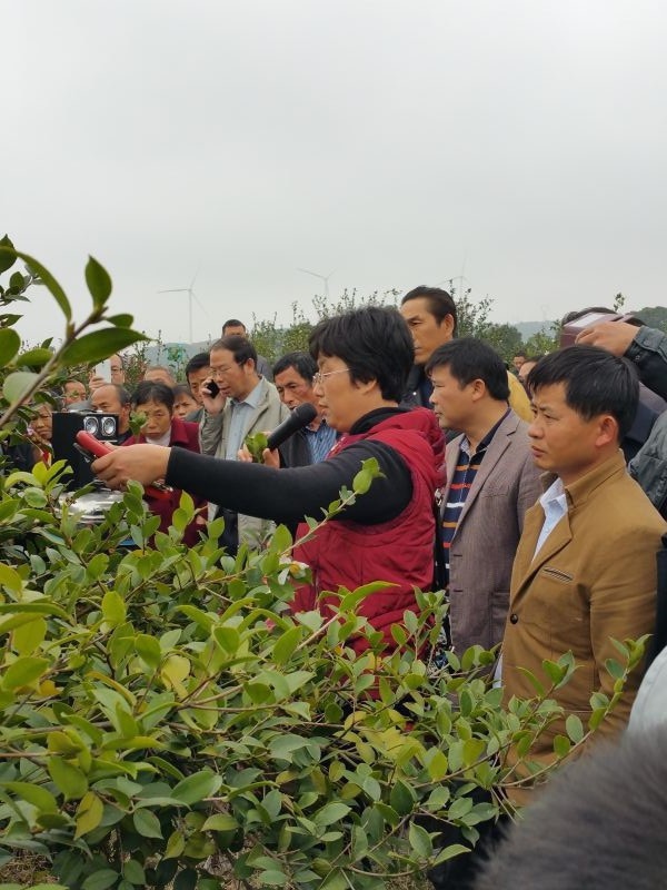 全市林業(yè)技術指導站及部分油茶企業(yè)、大戶基地參觀,現場指導油茶樹整形修剪