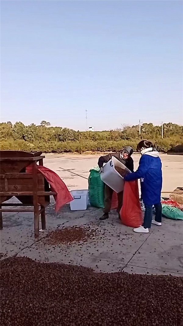 云山油茶公司科學(xué)利用晴天曬場(chǎng)晾曬、雨天室內(nèi)榨油,集中力量搶榨最后剩余油茶籽,迎接新年的到來。