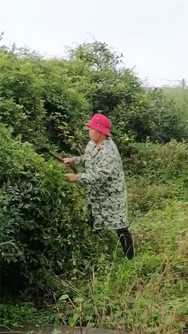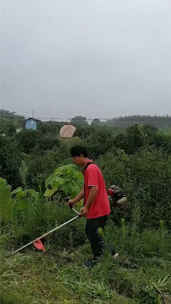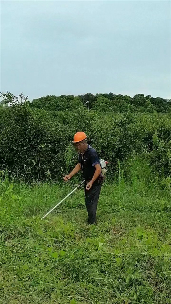 云山油茶基地每年此時茅草、藤蔓長勢很快,在不少區段、地塊嚴重影響茶林采光和觀瞻。此時,基地總是不適時機地組織人力和機械進行清除,確保油茶籽后期的生長和良好環境。
