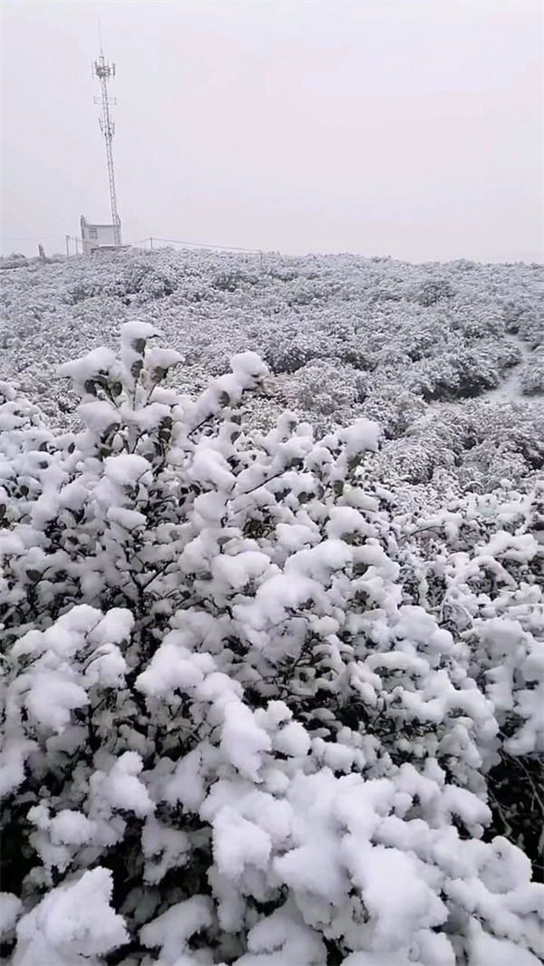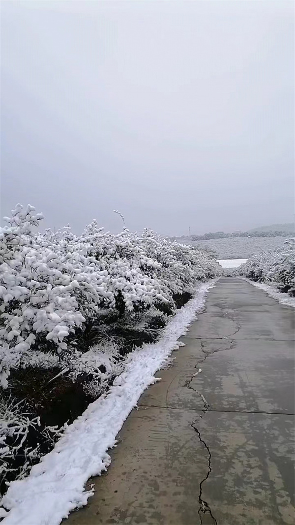 云山油茶基地迎來2024年第一場雪。瑞雪兆豐年,今年是油茶的“大年”,茶花盛開,均衡綻放,加上瑞雪逢時,政策助力,人亦努力,今年的油茶產業一定是豐產豐收。
