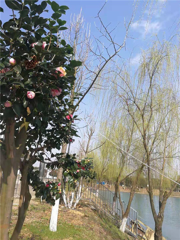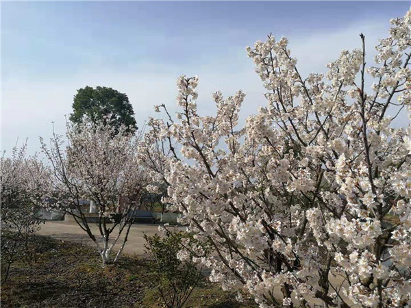 云山油茶基地春色迷人。有詩曰:櫻花張笑臉,垂柳展婀姿。 名卉隱其后,只待爛漫時。